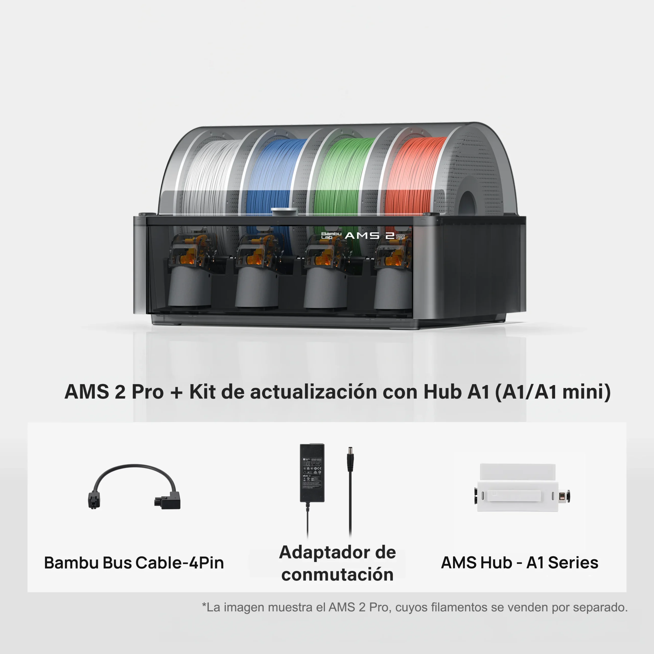 - El AMS 2 Pro es compatible con Impresoras de la serie X1/P1/A1 con accesorios adicionales necesarios. Las variantes incluyen todo lo necesario para una compatibilidad total.