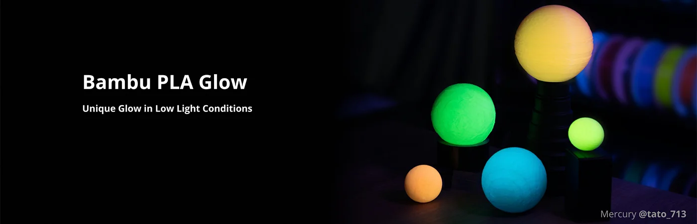 Bambu PLA Glow incorpora un aditivo distintivo: polvo luminoso, que confiere una propiedad especial a los objetos impresos, haciendo que emitan un brillo cautivador en la oscuridad.