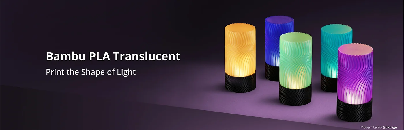 El Bambu PLA Translucent, disponible en varios colores, es perfecto para elaborar pantallas de lámparas y faroles decorativos. Su acabado esmerilado difunde la luz a la perfección. Dada su durabilidad mejorada, es ideal para iluminación y decoración de interiores a largo plazo. ¡Personaliza la forma de la luz con Bambu PLA Translucent!