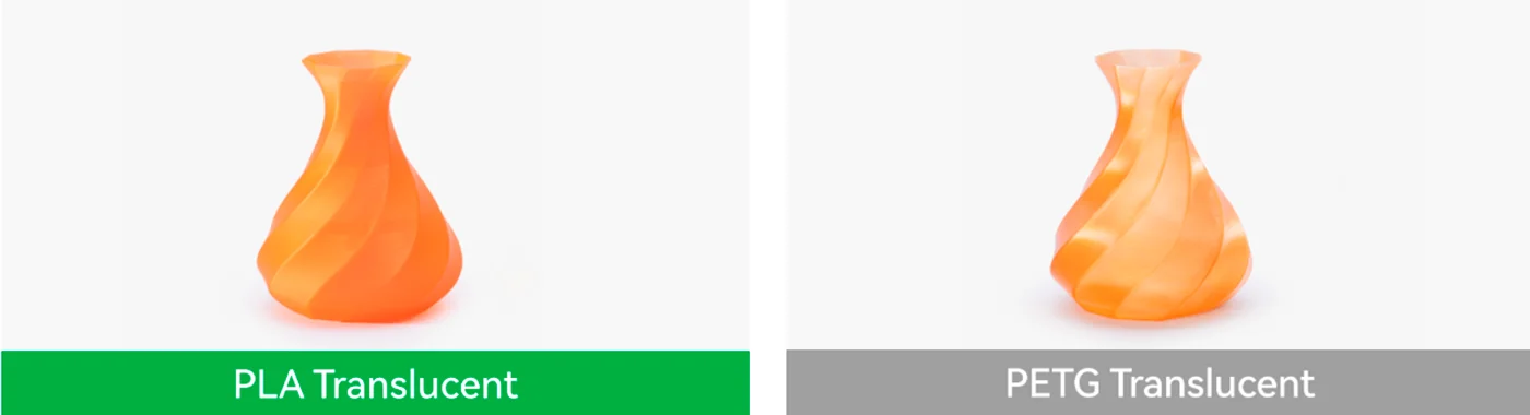 3. Aspecto: el PLA Translucent tiene una textura de vidrio esmerilado que difunde bien la luz, mientras que el PETG Translucent es más transparente y tiene un acabado cristalino.