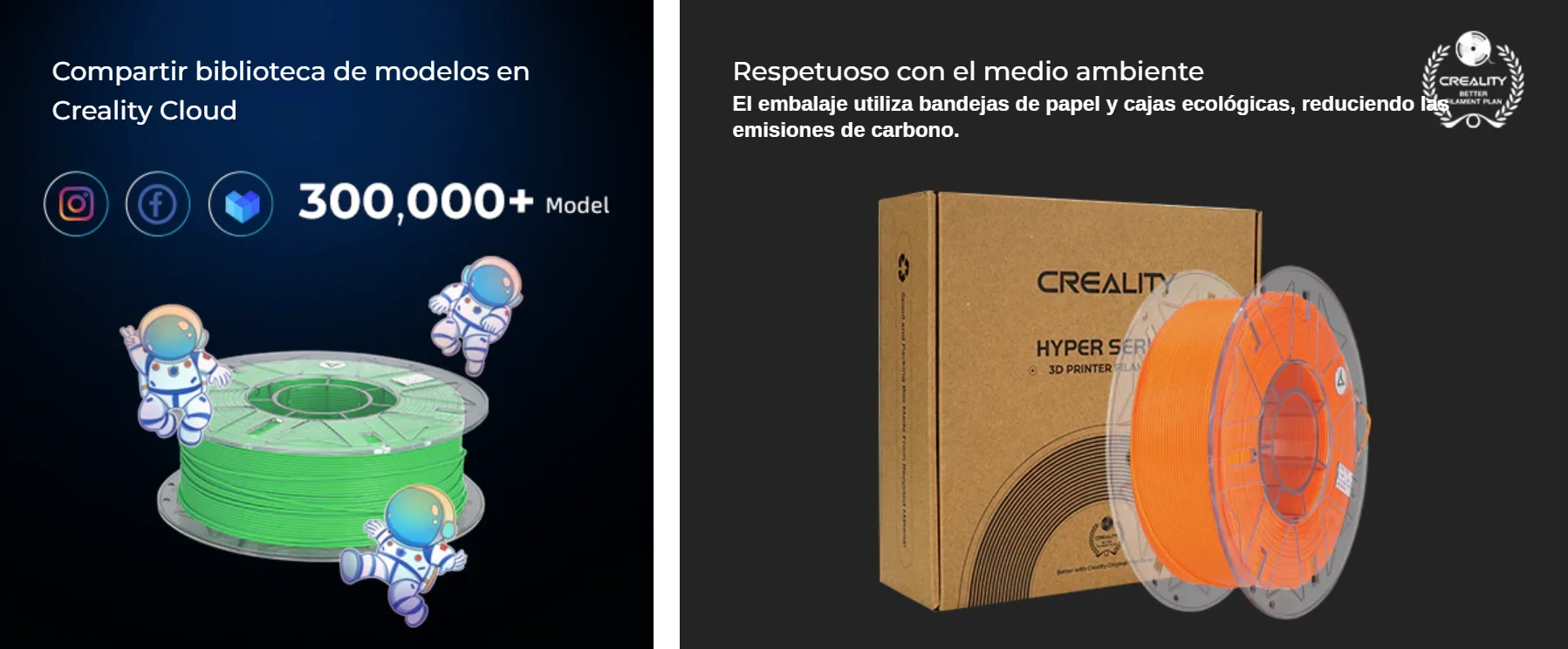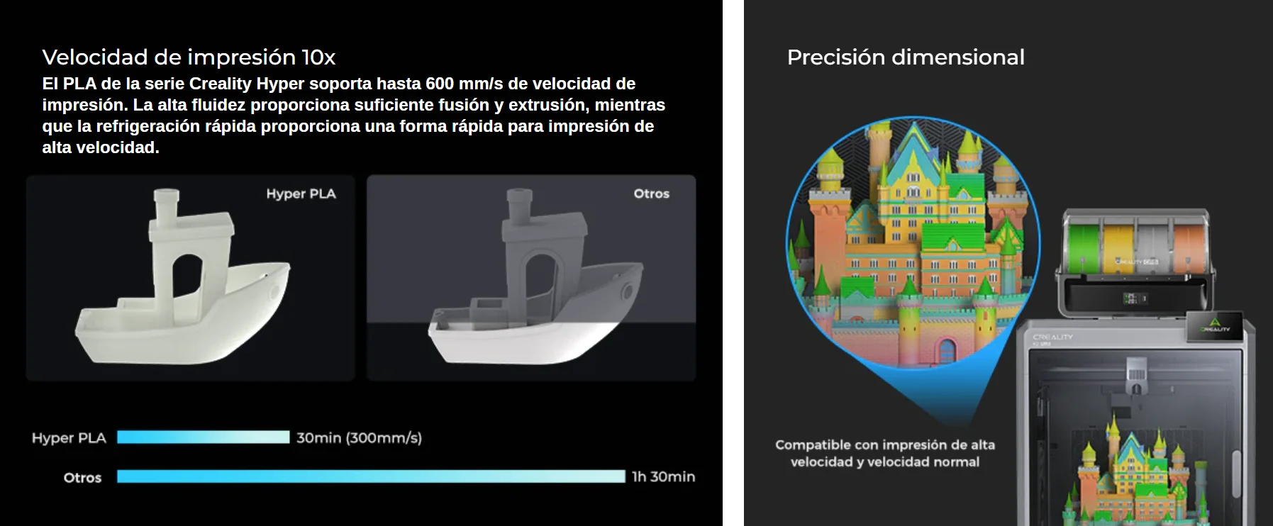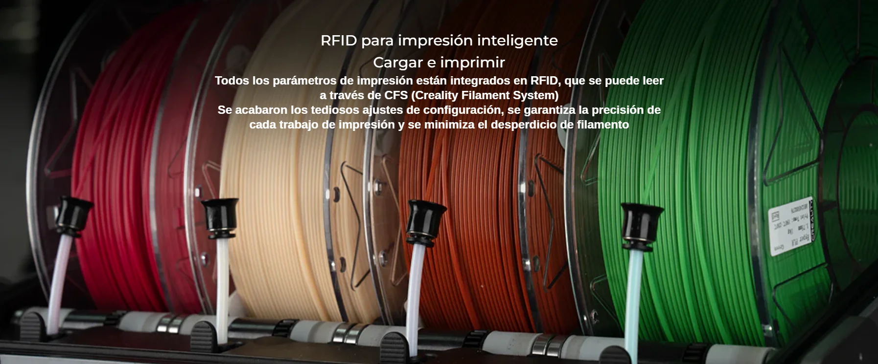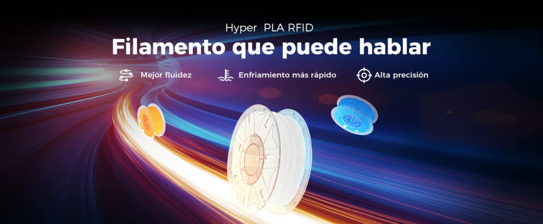 El filamento Creality Hyper PLA es un PLA de alta velocidad con tecnología RFID integrada, que permite a las impresoras compatibles reconocer automáticamente el material y ajustar los parámetros de impresión sin necesidad de configuración manual.