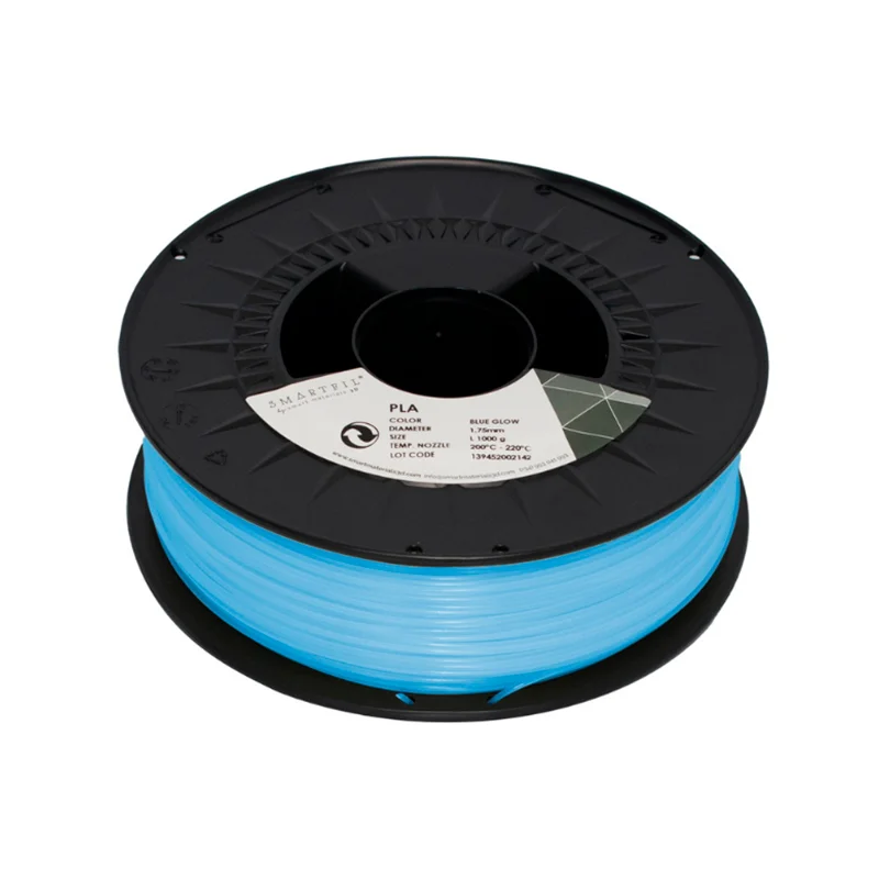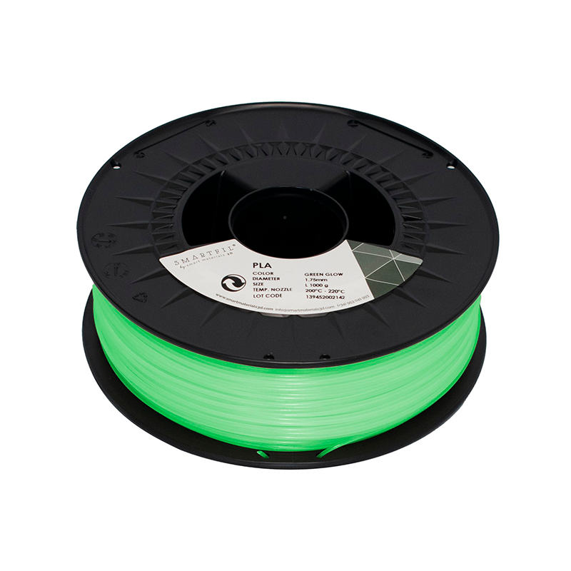 Estos filamentos contienen partículas fotoluminiscentes que al absorber luz, brillan en la oscuridad. Es necesario exponer la pieza previamente a la luz para cargar el material y posteriormente observarlo en la oscuridad.
