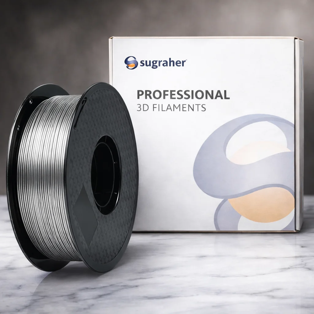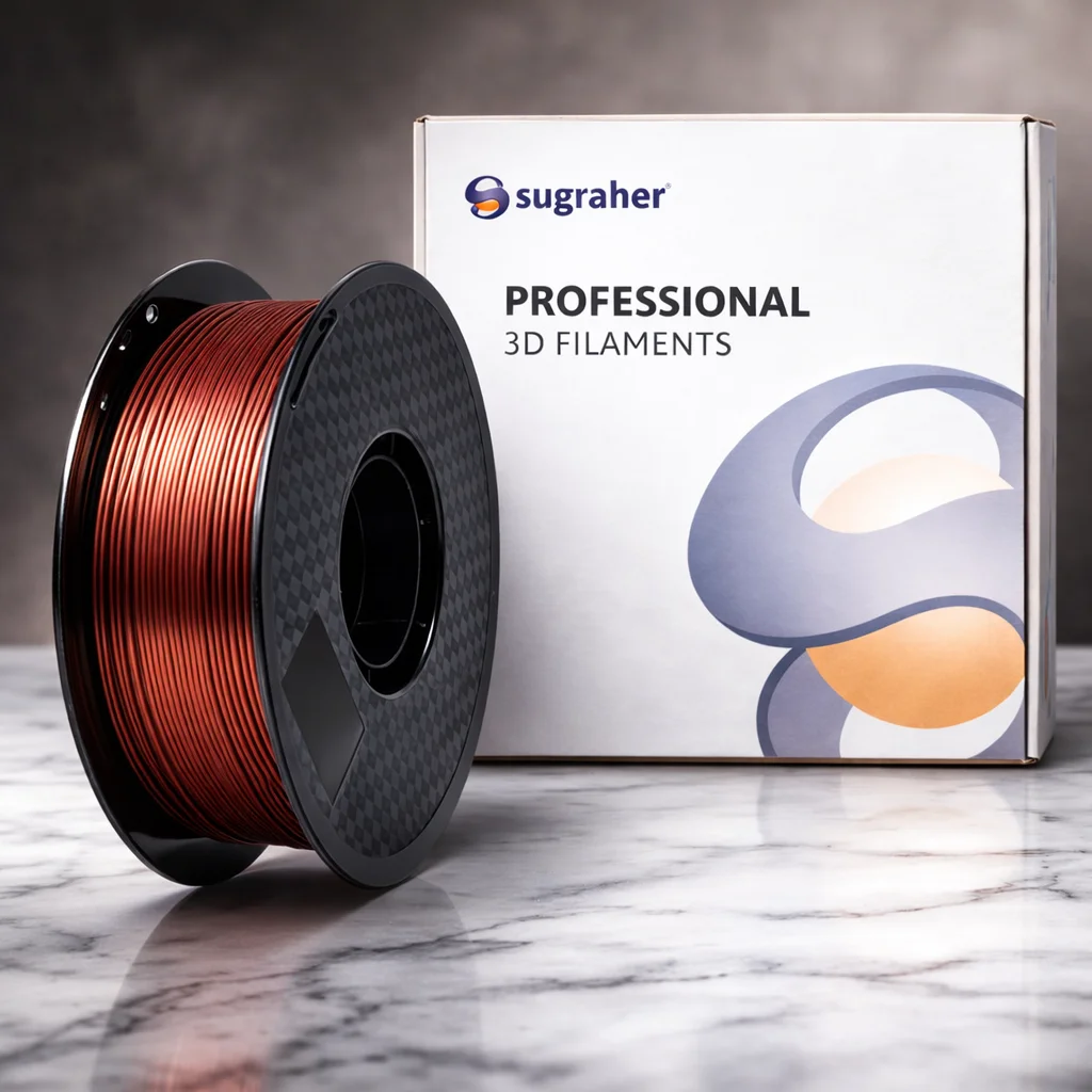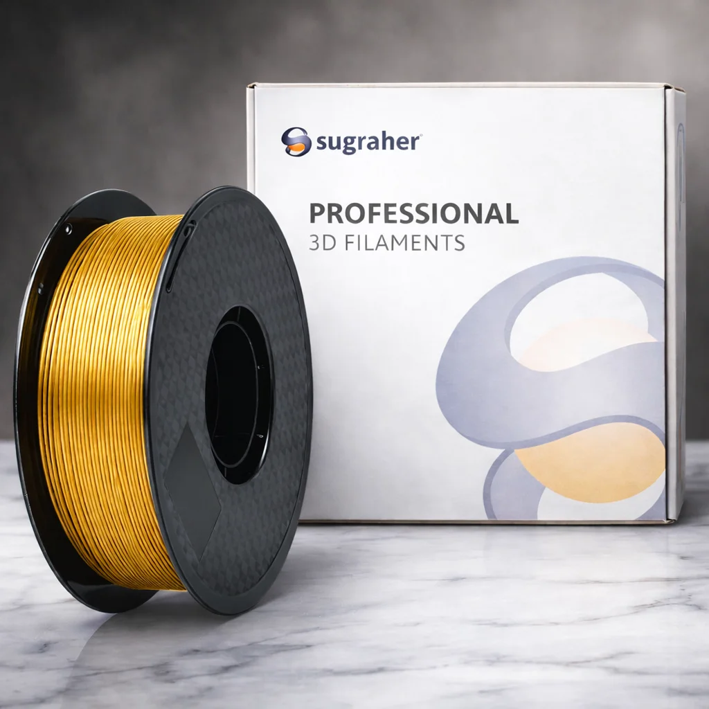 El filamento Sugraher PLA Silk Professional está diseñado para lograr un acabado brillante tipo seda o metalizado sin perder la facilidad de impresión del PLA.