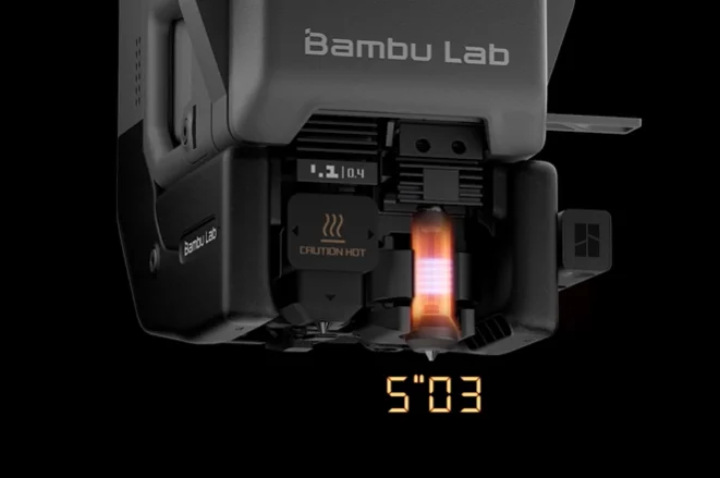 El Hotend de inducción Vortek calienta rápidamente la boquilla hasta la temperatura de impresión en aproximadamente 8 segundos (PLA). Esta respuesta rápida acorta las transiciones de cambio de color y reduce aún más el desperdicio de purga. La protección integrada contra sobrecalentamiento, sobretensión, cortocircuitos y circuito abierto garantiza un rendimiento fiable durante flujos de trabajo continuos multimaterial.