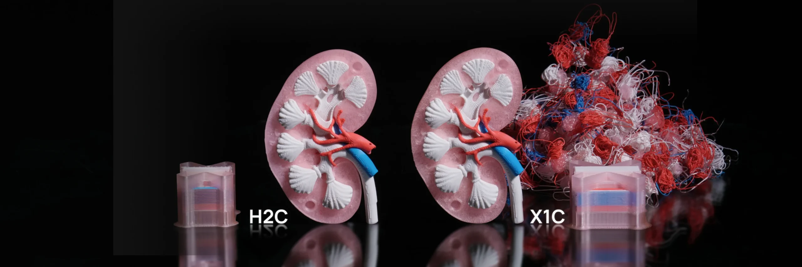 El Sistema Vortek utiliza hasta seis hotends intercambiables por inducción para lograr una impresión multimaterial verdadera con una reducción significativa del desperdicio de purga en comparación con los sistemas de tobera única. El mecanismo de cambio de hotend elimina el purge flush durante los cambios de filamento (H2C bajo 7 filamentos), ahorrando tanto material como tiempo.