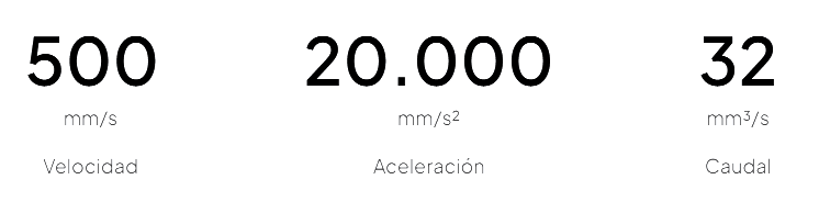 - Velocidad de impresión ≤ 500 mm/s (Recomendado 250 mm/s)