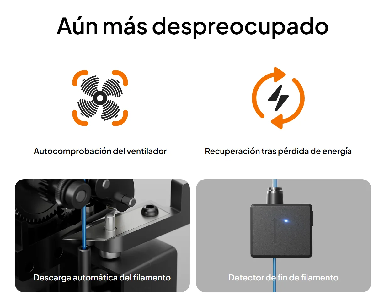 - Refrigeración avanzada y filtro de aire integrado: Optimiza la eficiencia de refrigeración con dos ventiladores adicionales de alto rendimiento: un potente ventilador auxiliar para la refrigeración de piezas y un ventilador regulador de temperatura de la cámara, ambos con autocomprobaciones en tiempo real para un rendimiento óptimo. Su filtro de nanocristales minerales absorbe partículas nocivas y olores, garantizando un entorno de impresión fresco y seguro.