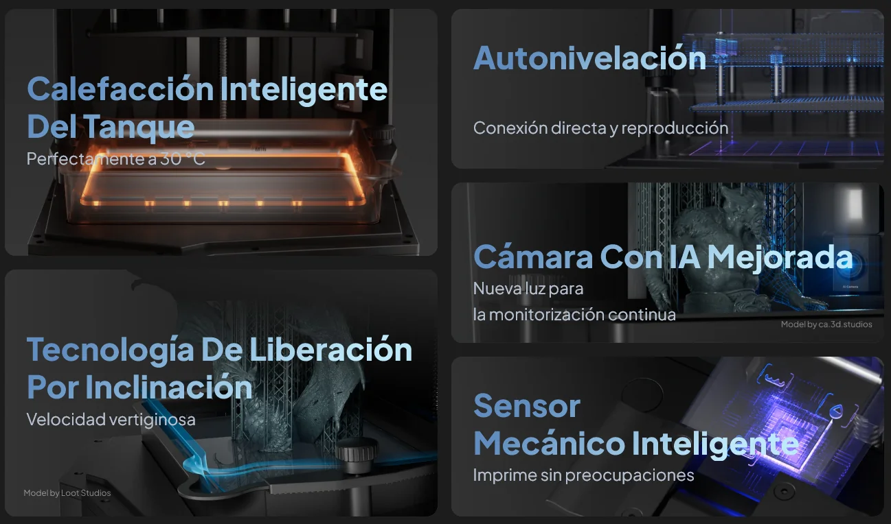 La Saturn 4 Ultra 16K incorpora un sistema inteligente de calentamiento del tanque que mantiene la resina a una temperatura constante de 30 °C, garantizando una mayor fluidez y adherencia entre capas. Esto reduce drásticamente defectos como burbujas y separación de capas, lo que se traduce en un mayor índice de éxito y una mejor calidad de impresión.