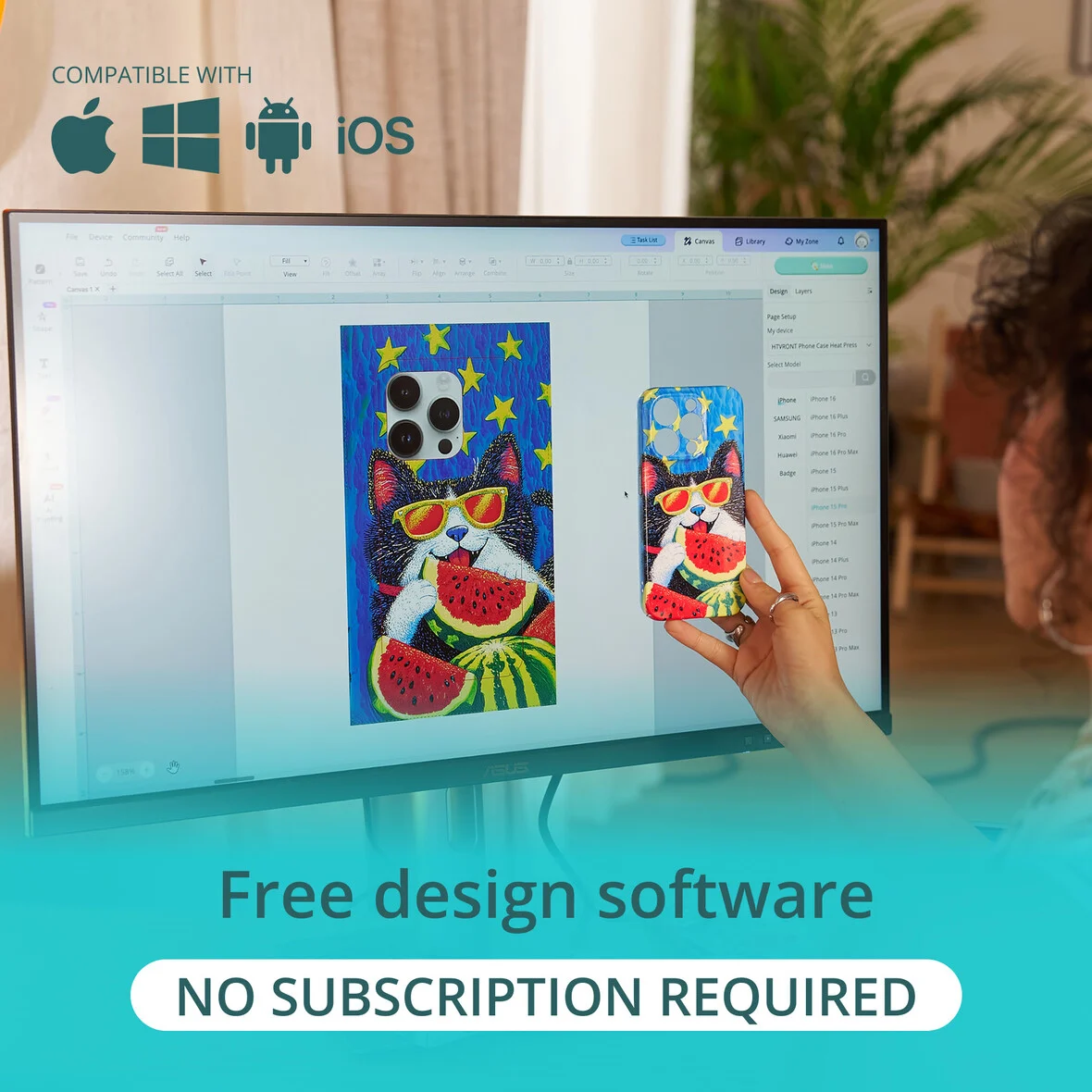 Diseñada pensando en los artesanos, esta prensa térmica para fundas de teléfono es increíblemente fácil de usar. Los controles intuitivos y el rápido tiempo de precalentamiento te permiten empezar a crear en cuestión de minutos. Sólo tienes que utilizar el software gratuito LOKLiK IdeaStudio para diseñar tu obra de arte, imprimir en la película de sublimación y la prensa hará el resto.
