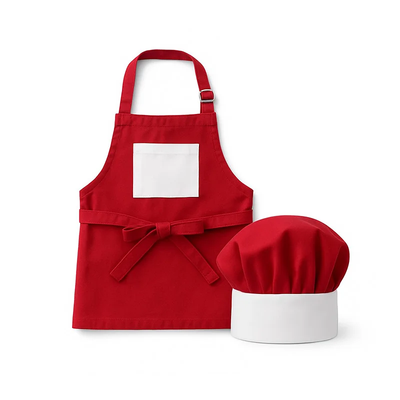 Conjunto de delantal y gorro para niño personalizable mediante sublimación.