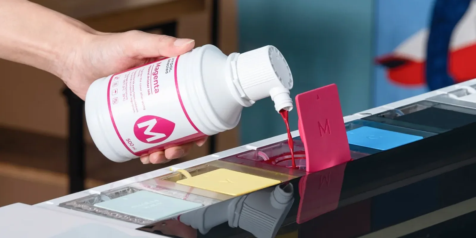 - La capacidad del depósito de tinta blanca es de 1000 ml, mientras que la de los demás depósitos es de 500 ml. Asegúrese de tener suficiente tinta para su proceso de impresión.