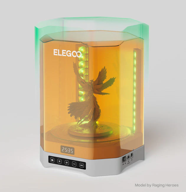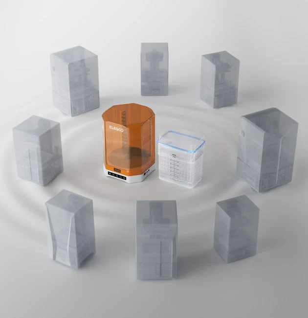 Está diseñado específicamente para todos ELEGOO Impresoras de resina 3D. Para el Jupiter Serie, deberá eliminar la placa de compilación para la limpieza, mientras que para otros modelos, consulte el «volumen de lavado máximo» en la sección de especificaciones para determinar si la eliminación de la placa es necesaria en función de la altura del modelo.