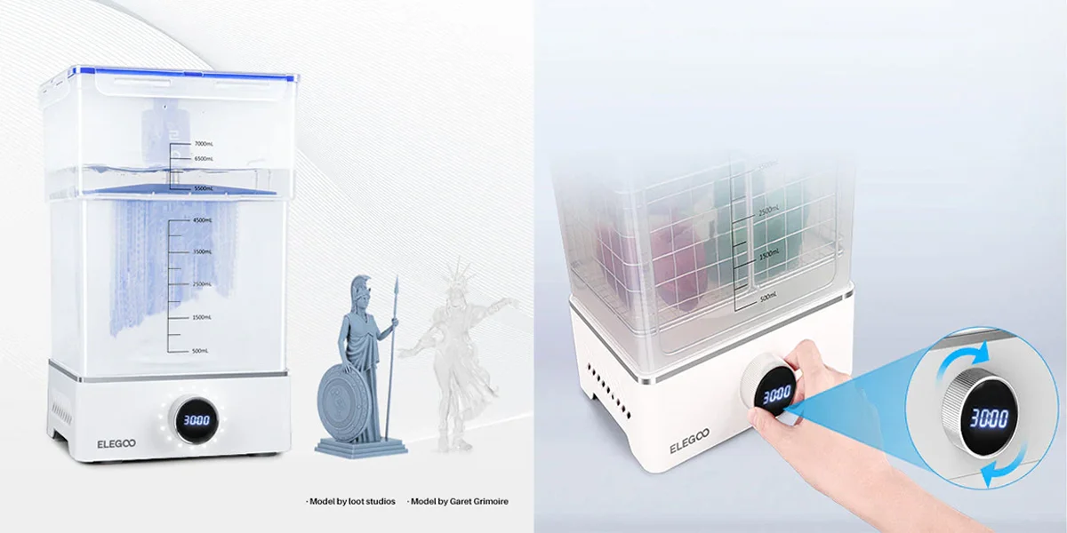El paquete Mercury XS de Elegoo es una solución integral para limpiar y curar sus impresiones 3D, diseñada para mejorar la eficiencia del posprocesamiento y la calidad de impresión. Con su doble función, gran volumen de lavado, exposición panorámica de 360° y funcionamiento intuitivo, este paquete es imprescindible para quienes buscan optimizar el flujo de trabajo de impresión 3D.